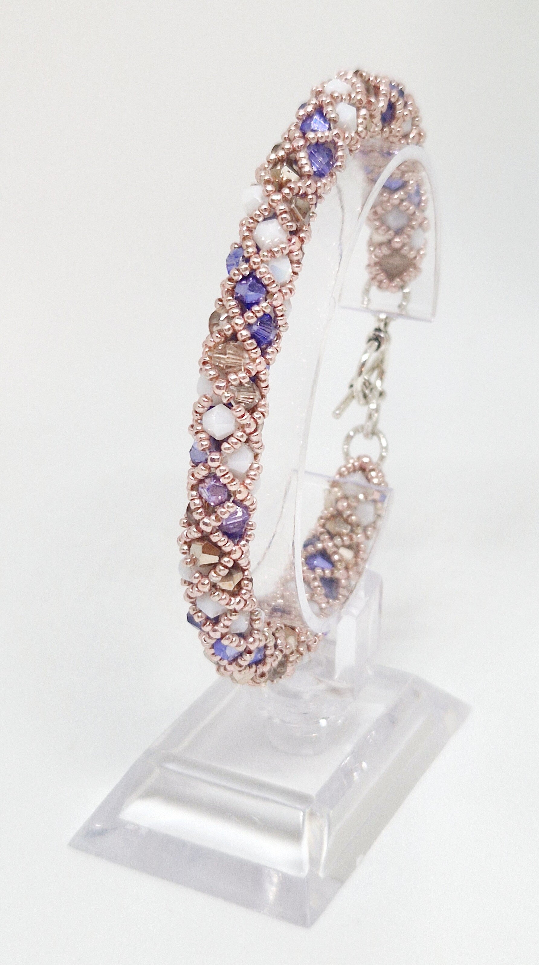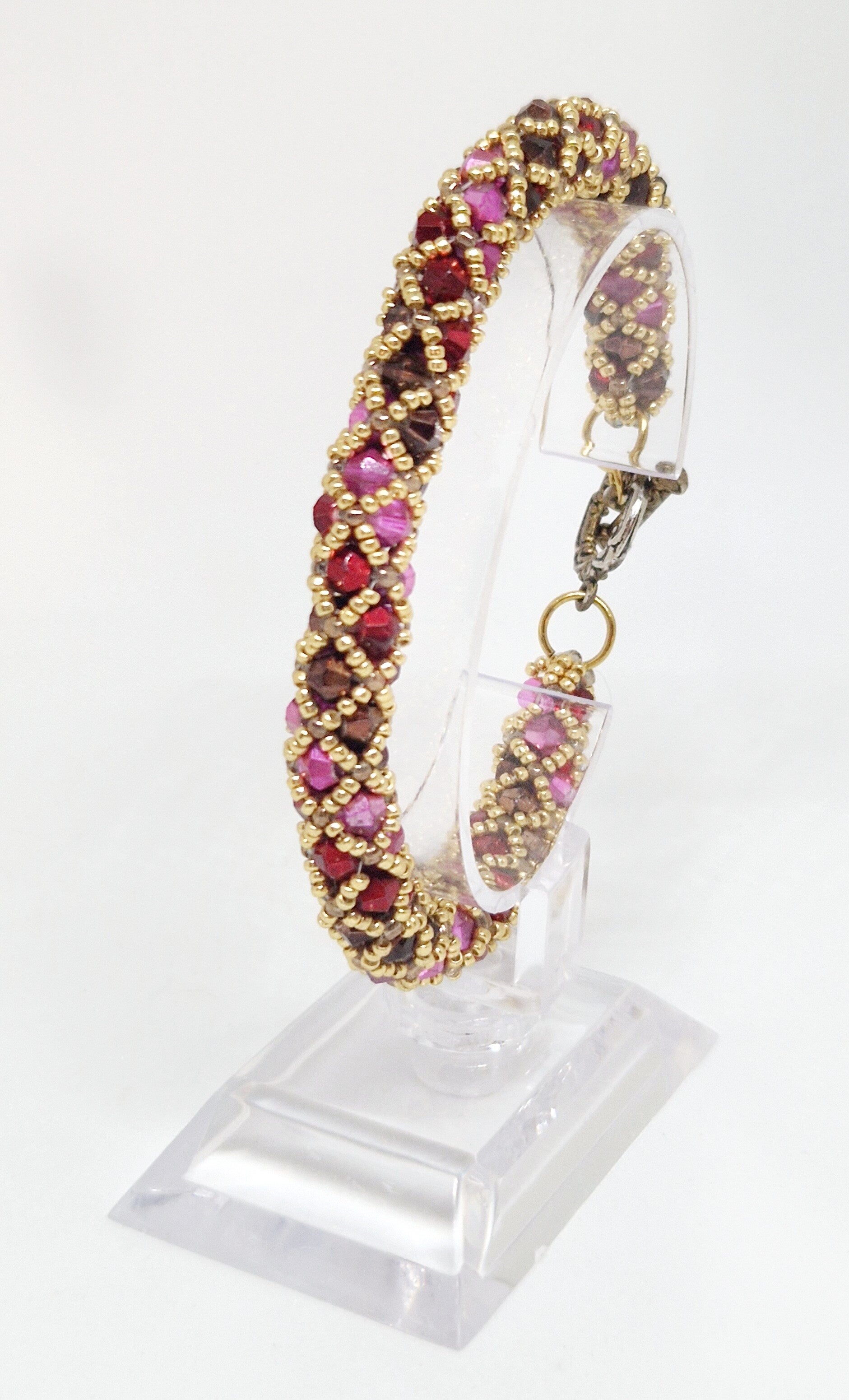 Mooie armband in "netted rope" steek, met een middeleeuwse uitstraling. In verschillende kleuren.